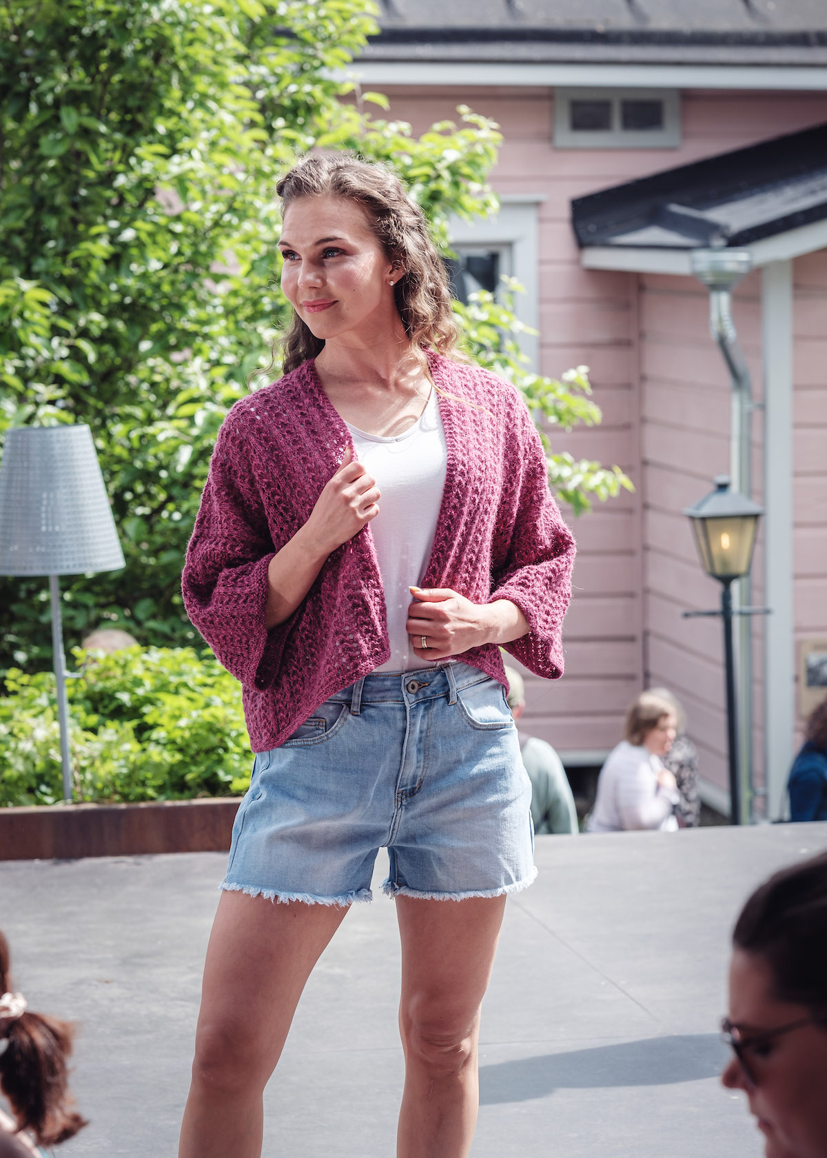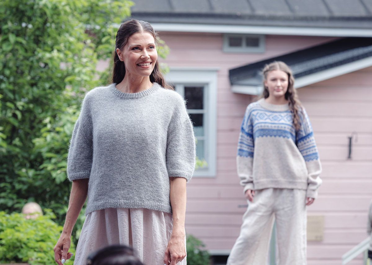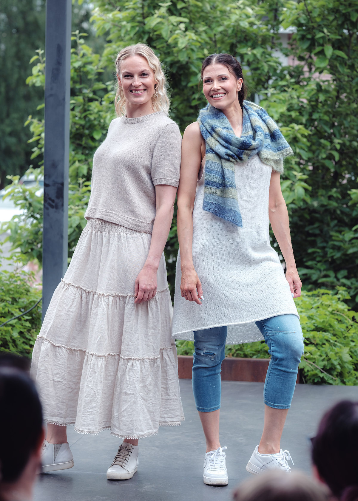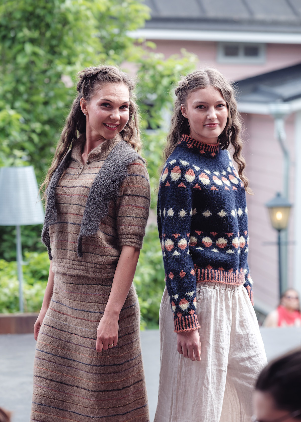 The summer Knit Festival in Jyväskylä was once again filled with joy, inspiration, and the beauty of handmade crafts – and one of the most anticipated events is, of course, the fashion show held on the Titityy festival stage in the cozy Toivola Yard! This year’s catwalk featured a stunning array of knitwear that represents the very best the knitting world has to offer – top designers, the latest favorite yarns, and bold combinations.