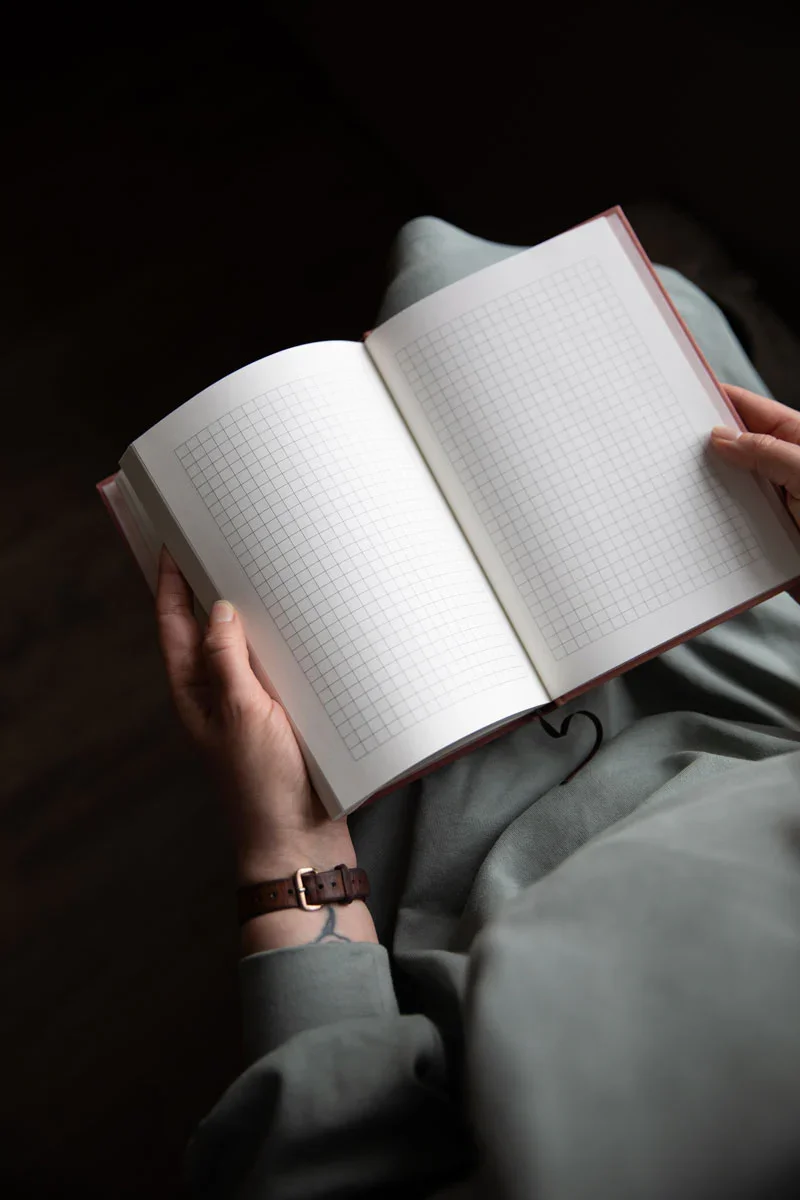 - space for 31 knitting projects, 6 pages for keeping track of your yarn purchases, 18 gridded pages, e.g. for charts or colourwork sketches, a knitting needle sizes and conversions table, the most common abbreviations