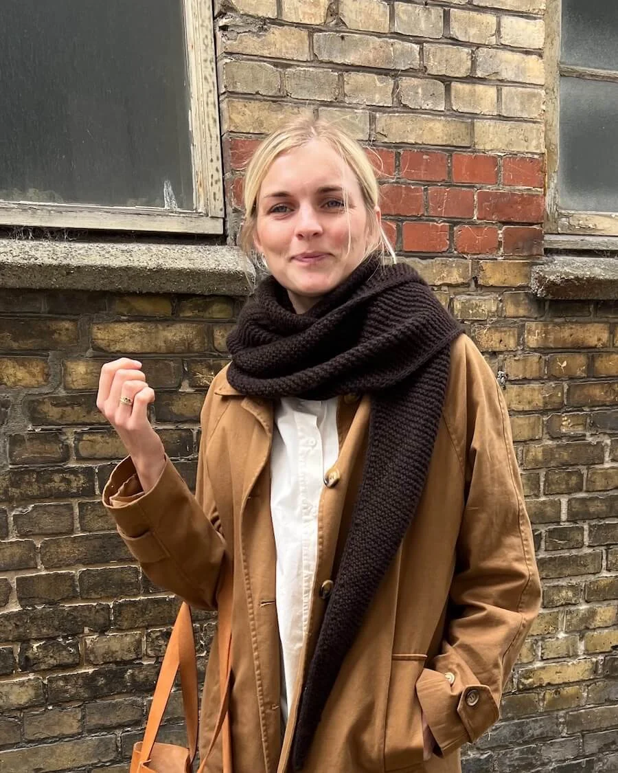 Knit the cozies scarf Petiteknit Sophie Shawl, a perfect garter stitch shawl for cozying up on cold days. This yarn kit includes six balls or 300g of Sandnes Garn Alpakka ULL (Alpaca and Wool) in your chosen color, offering the softness and luxurious warmth that alpaca can provide.