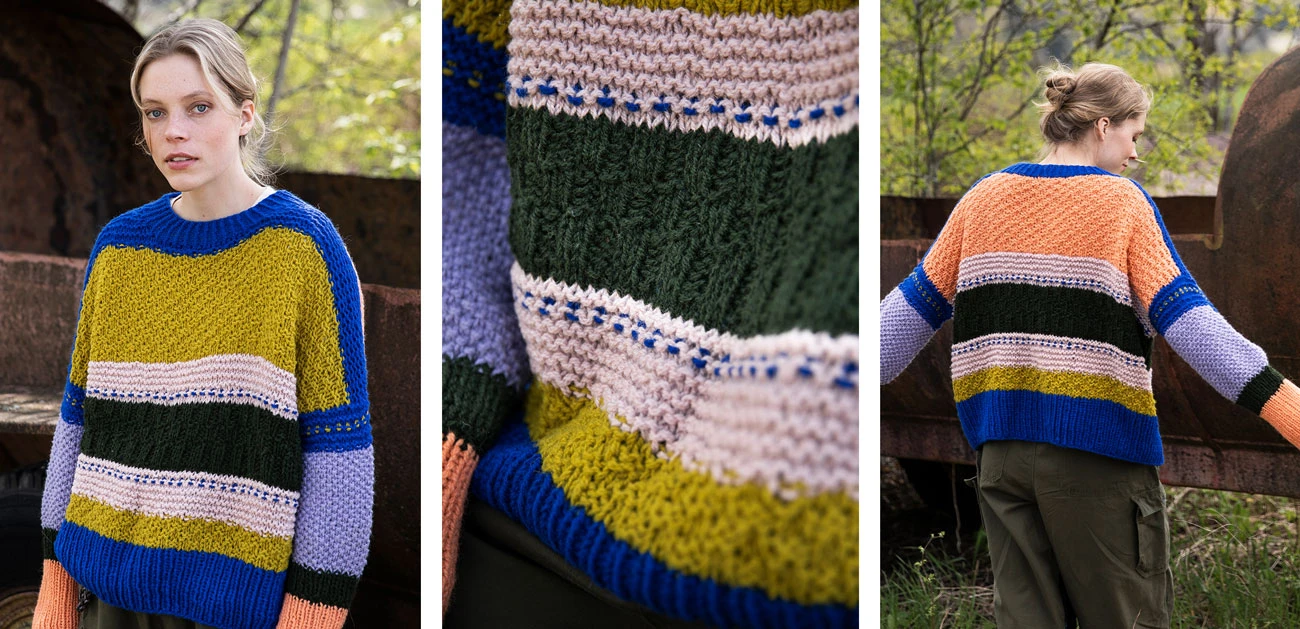 Jon 90’s Jovi on kunnianosoitus ysärille – ajalle, jolloin villapaidat olivat isoja, värikkäitä ja vähän kummallisia. Malli on ilmeikäs, hauska ja täysin neulojansa näköinen. Erilaisia pintoja ja kuutta väriä yhdistävä paita toimii myös jämälankaprojektina.