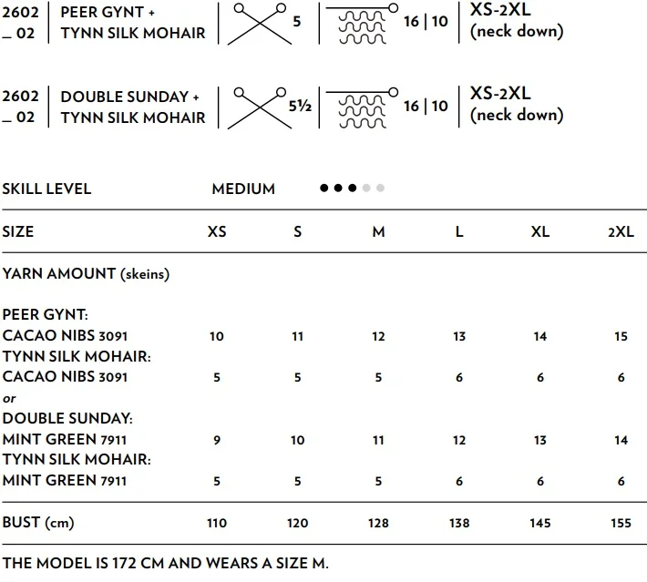 Sandnesin neuleohjeen voi ostaa vain Sandnes Garn lankaostoksen yhteydessä. Noudattamiemme jälleenmyyntiehtojen mukaisesti tilauksen täytyy sisältää ohjeen lisäksi myös Sandnes Garn lankoja. Kysy tarvittaessa neuvoa langan valintaan!
