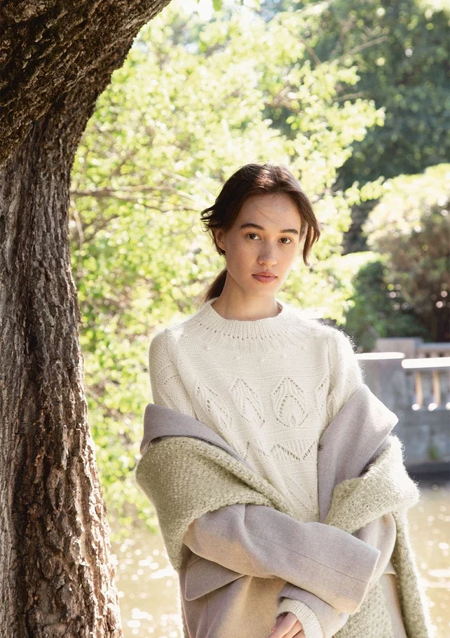 Lourdes on herkkä ja näyttävä villapaita, jossa on tarkoitus olla paljon väljyyttä (tämä on otettu huomioon jo valmiin neuleen ympärysmitassa).