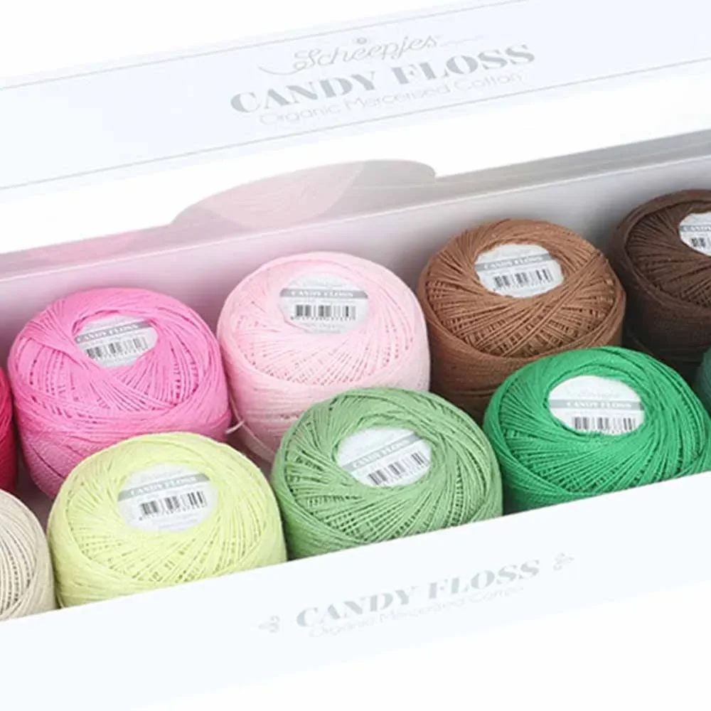 Sukella taianomaiseen karkkikauppaan Scheepjes Candy Floss -langan kanssa! Scheepjes Candy Floss on ainutlaatuinen lanka, joka poikkeaa perinteisistä neulonta- ja virkkauslangoista ja avaa ovet monipuolisiin käsityötekniikoihin. Tämä korkealaatuinen 100 % merseroitu puuvillalanka on suunniteltu erityisesti kirjontaan, pitsi- ja mikrovirkkaukseen sekä muihin tarkkuutta vaativiin töihin.